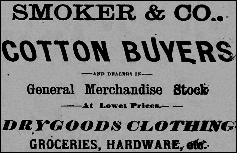 Smoker found himself at the center of a legendary event of the riverboat era. He was among the lucky few to be on board during the world-famous race between the steamers Robt. E. Lee and the Natchez in 1869. A New Orleans newspaper described the significance of the event this way: “The people of the entire Mississippi Valley have been excited about this race as they never were before by any similar event, and the banks of the great river were thronged with thousands of deeply interested spectators during the progress of the race, all along the route from New Orleans to St. Louis.” Even with the intense interest in steamboats, other major developments in transportation were taking place. Initial efforts had been largely disrupted by the Civil War, but railroad construction expanded after the conflict was over, connecting the east and west coasts in 1869. Perhaps Captain John Smoker realized the end of the steamboat era loomed on the horizon, for not long after his participation in the renowned river race he moved to Arkadelphia and opened a business he called “Smoker & Co.” The enterprise grew to be one of the leading cotton-buying and general mercantile operations in southwest Arkansas. The change of profession proved to be a wise decision, for river transportation quickly declined in importance following the railroad’s completion into southwest Arkansas in 1873. Smoker continued to successfully conduct his business in Clark County until he died in 1893. He is buried in Rose Hill Cemetery in Arkadelphia.