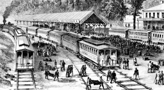 Supplementing the service offered by the main line, Joseph “Diamond Jo” Reynolds built a railroad from Malvern to Hot Springs to serve the transportation needs of the thousands of visitors to the spa city. The Diamond Jo Railroad was completed in 1875 and enabled even the infirm to make their way to the famed hot springs for years prior to the construction of a line running directly from Little Rock to the spa. Interestingly, the Diamond Jo was narrow-gauge. This meant that travelers who arrived in Malvern via the standard gauge rail had to transfer to another train at the depot. The line was eventually changed to standard gauge, which made travel to Hot Springs easier than ever before.