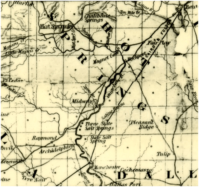 This is how “Pioneer” told the story of the dastardly deed: “A man by the name of George Washington, with his young wife, from Virginia, were looking at the country on horseback. They each rode a fine horse. Now Rube Timmons followed them for two days, and on this night, January 1849, Washington and his wife put up at Andrew Briggs’. Their horses were stabled and saddles hung in the gallery of the dwelling. A large bulldog lay near the saddles. Timmons, however, slipped the saddles from near the dog, saddled up the horses, and started north via Hot Springs.
