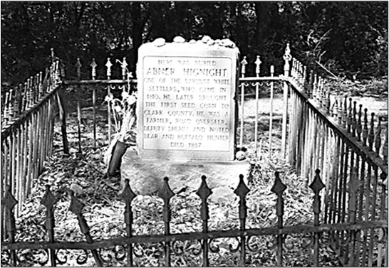 Abner Hignight died in 1857. While the precise location of his burial is unknown, a monument stands near Highway 26 and Terre Noire Creek in recognition of the Clark County pioneer.