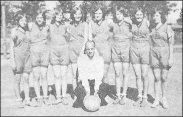 Left to right: Lola Hollowoa, Laura Williamson, Hazel Bradley, Louise Parson, Velma Loyd, Hazel McRee, Frances Thompson, Oldean Housley. In front is Junius Austin (teacher/coach)